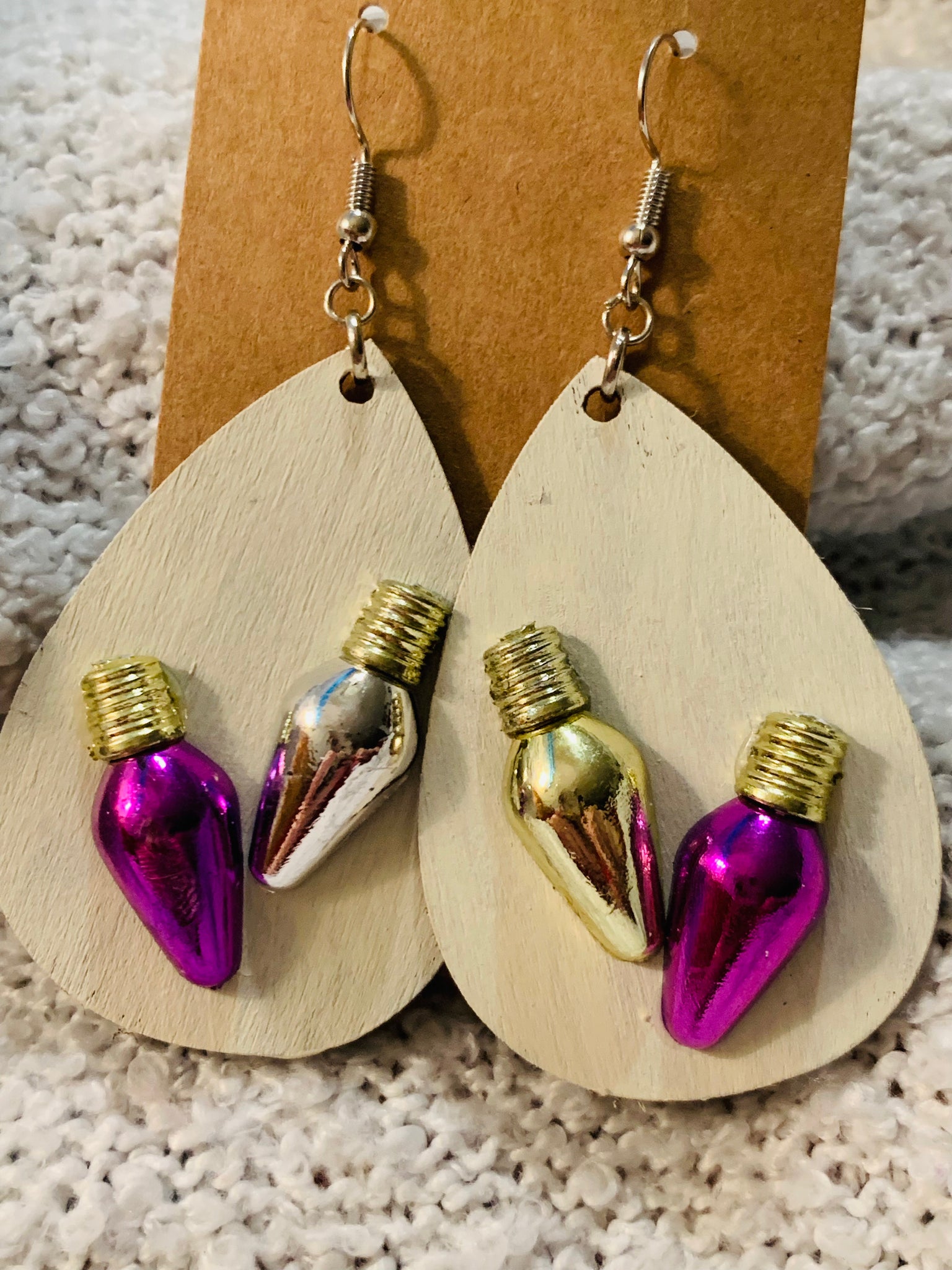 These are fun 3-D light bulb earrings!! These are a painted background.