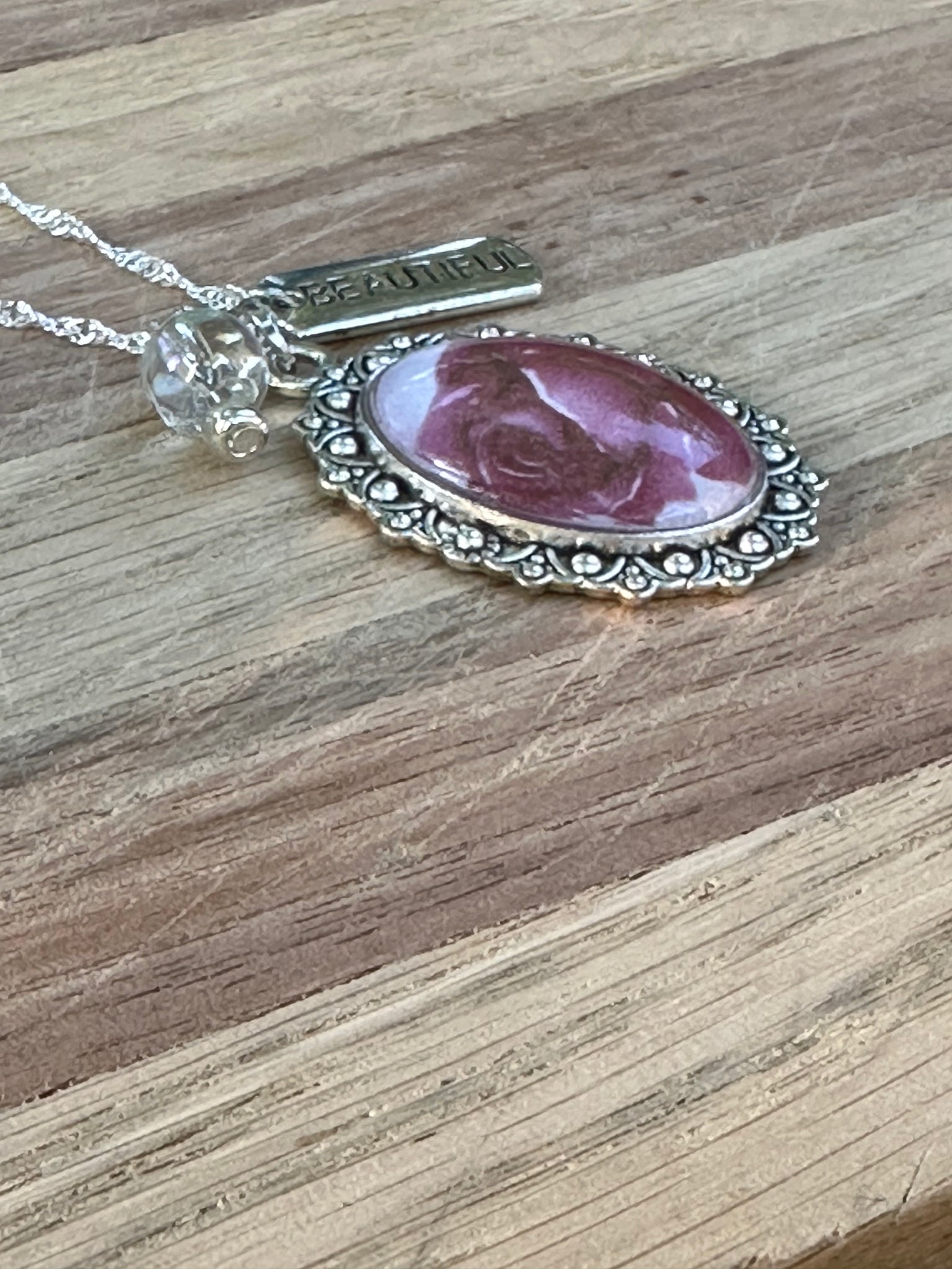 Is floral your jam? It’s mine. This is such an elegant necklace set off with a charm. Look at this beauty with the charms! Chain is 22”