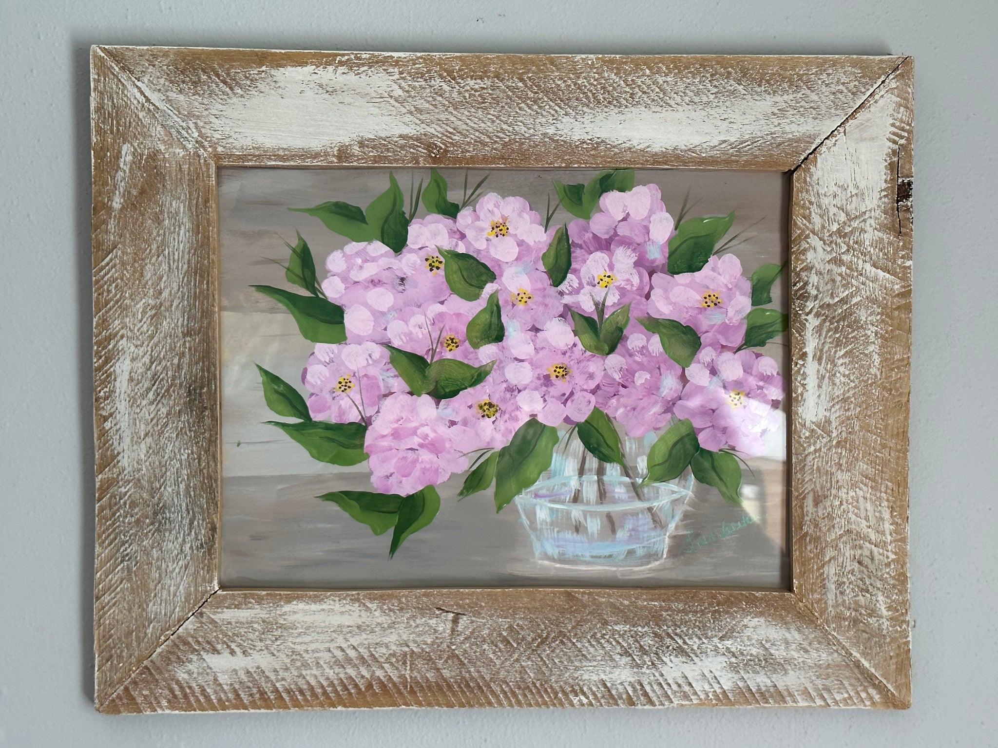 This is an acrylic painting. Approximately 12"x15". This is painted on card stock. It is sold framed but can be sold unframed. Just contact me for information.