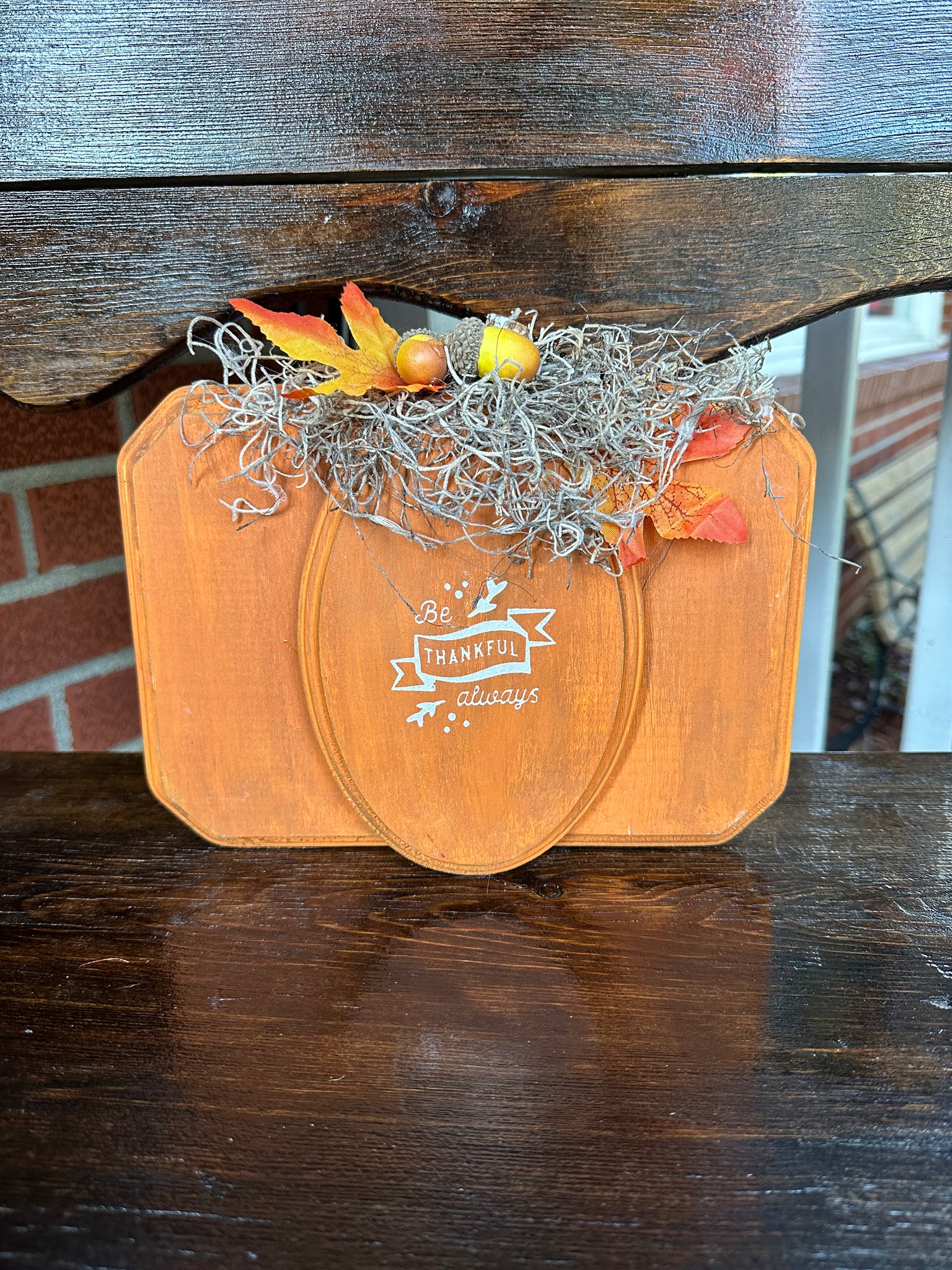 For neutral lovers - you will love this white pumpkin with Love plaque attached. Very eye popping. There is a stand on the back so it can sit on a ledge, mantle, shelf, or counter.